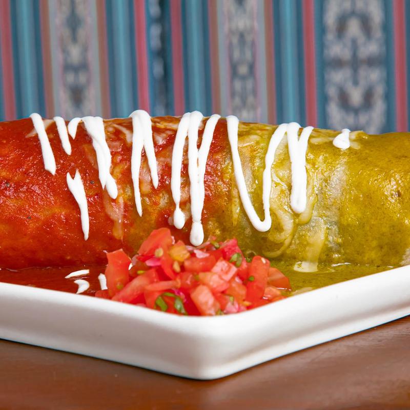 Fresh tortilla, three cheese blend, homemade guajillo pepper sauce, and queso fresco
